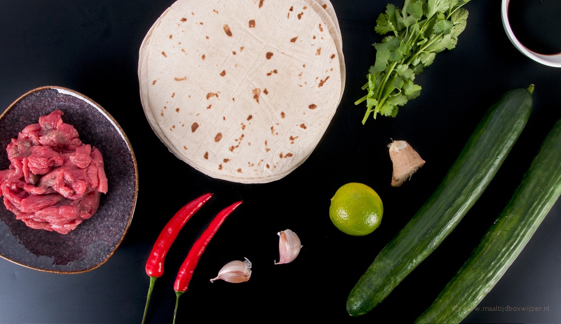 Koreaanse wraps met biefstukpuntjes